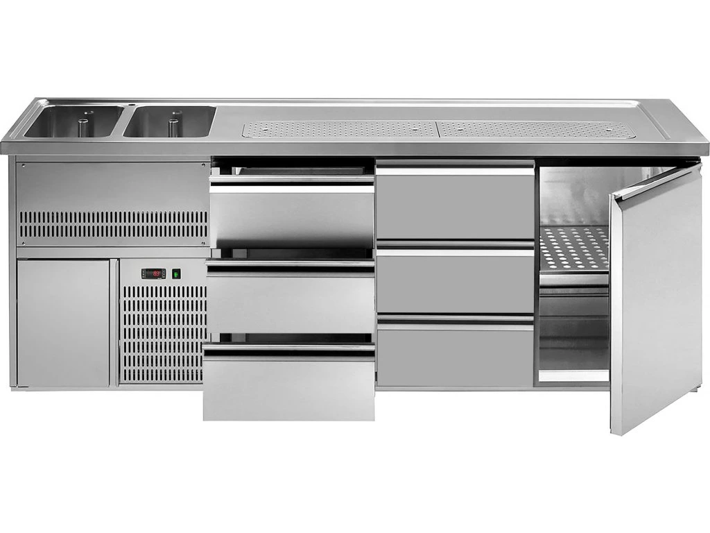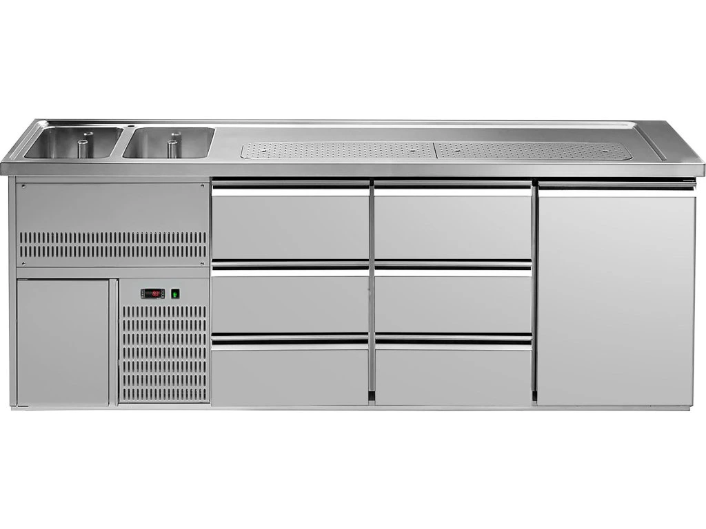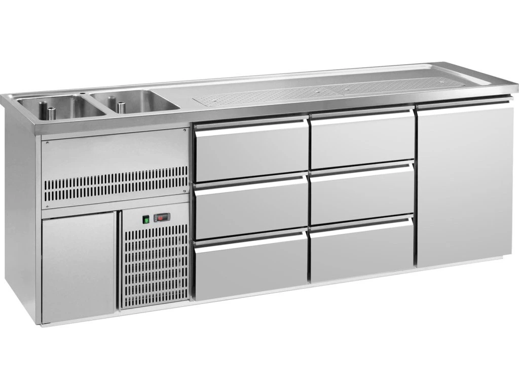 Barowy stół chłodniczy PREMIUM PLUS - 2500x700mm - 1 drzwi & 6 szuflad