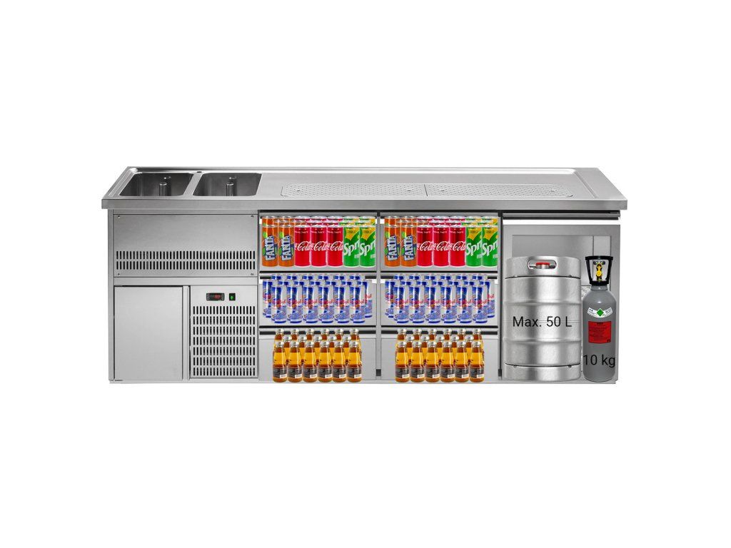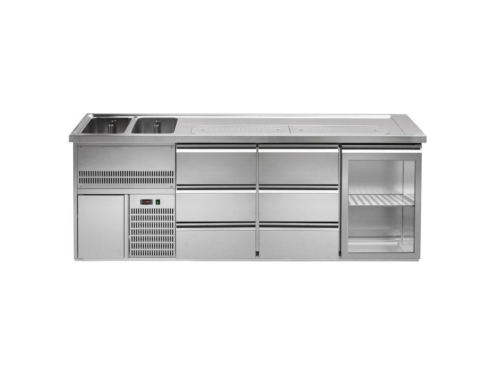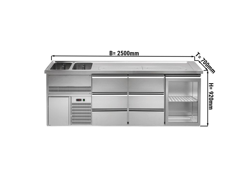Barowy stół chłodniczy PREMIUM PLUS - 2500x700mm - 1 szklane drzwi & 6 szuflad