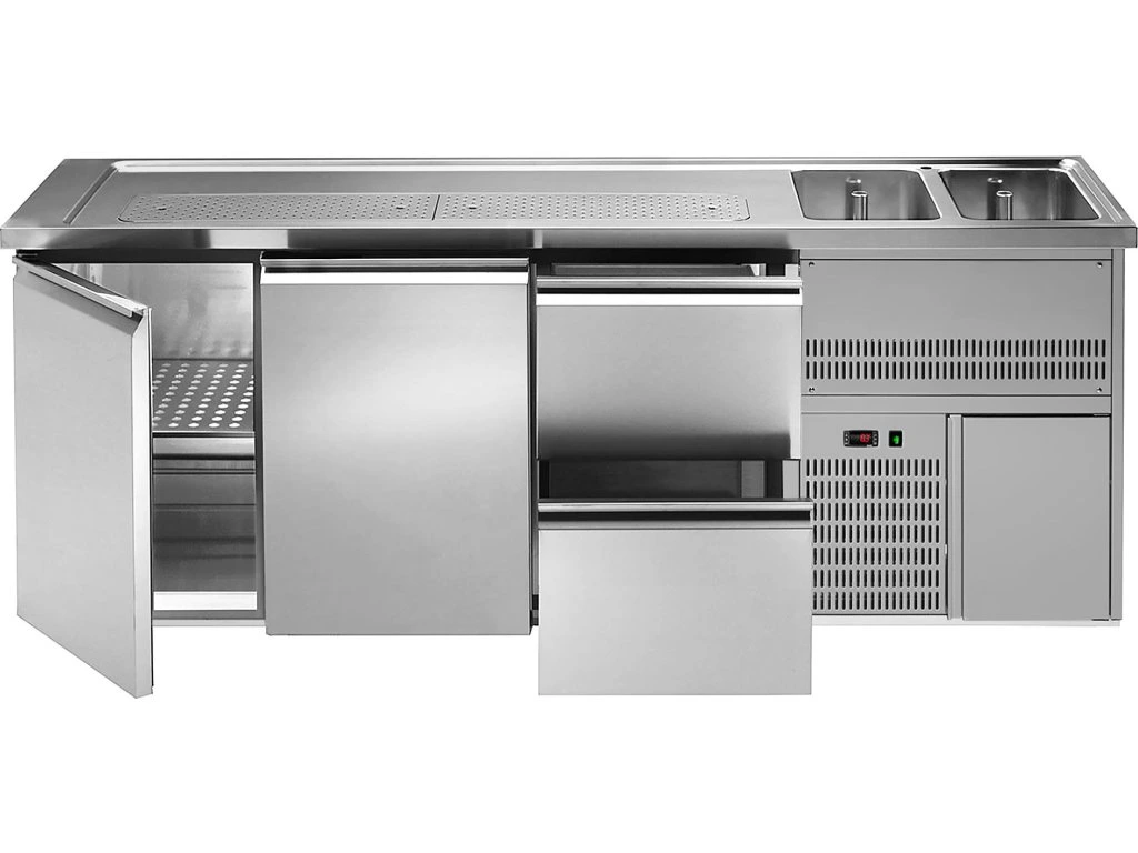 Barowy stół chłodniczy Premium PLUS - 2500x700mm - 2 drzwi & 2 szuflady