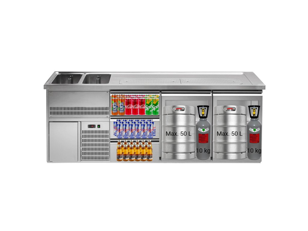 Barowy stół chłodniczy PREMIUM PLUS - 2500x700mm - 2 szklane drzwi & 3 szuflady