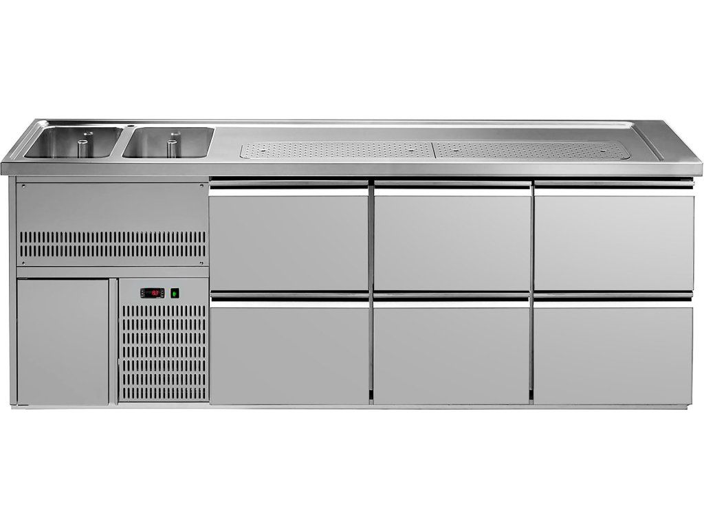 Barowy stół chłodniczy Premium PLUS - 2500x700mm - 6 szuflad