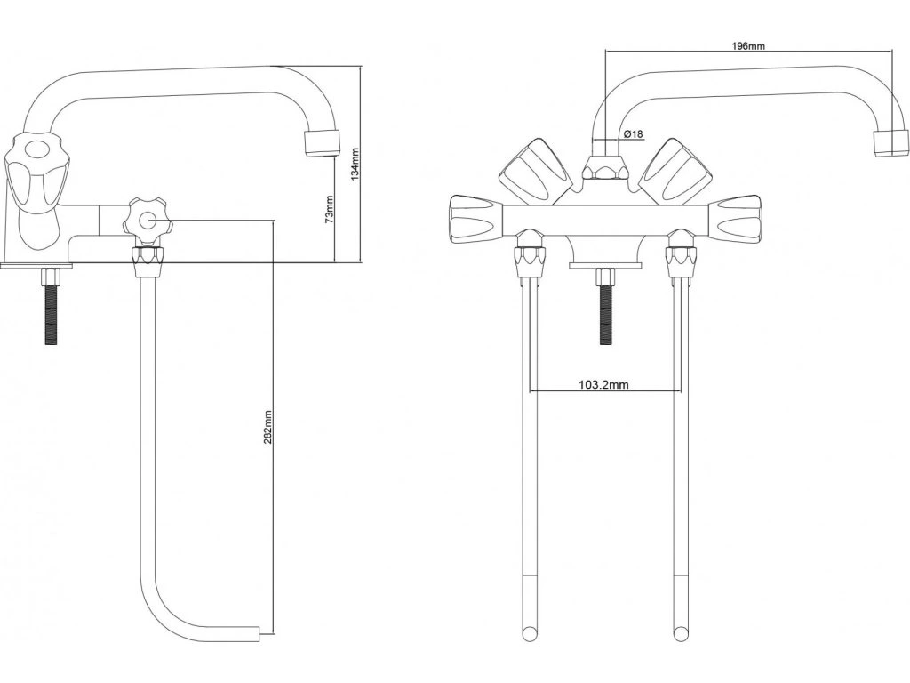 Bateria mieszająca z jednym otworem - z 2 rurami do podmywania i zaworem obrotowym