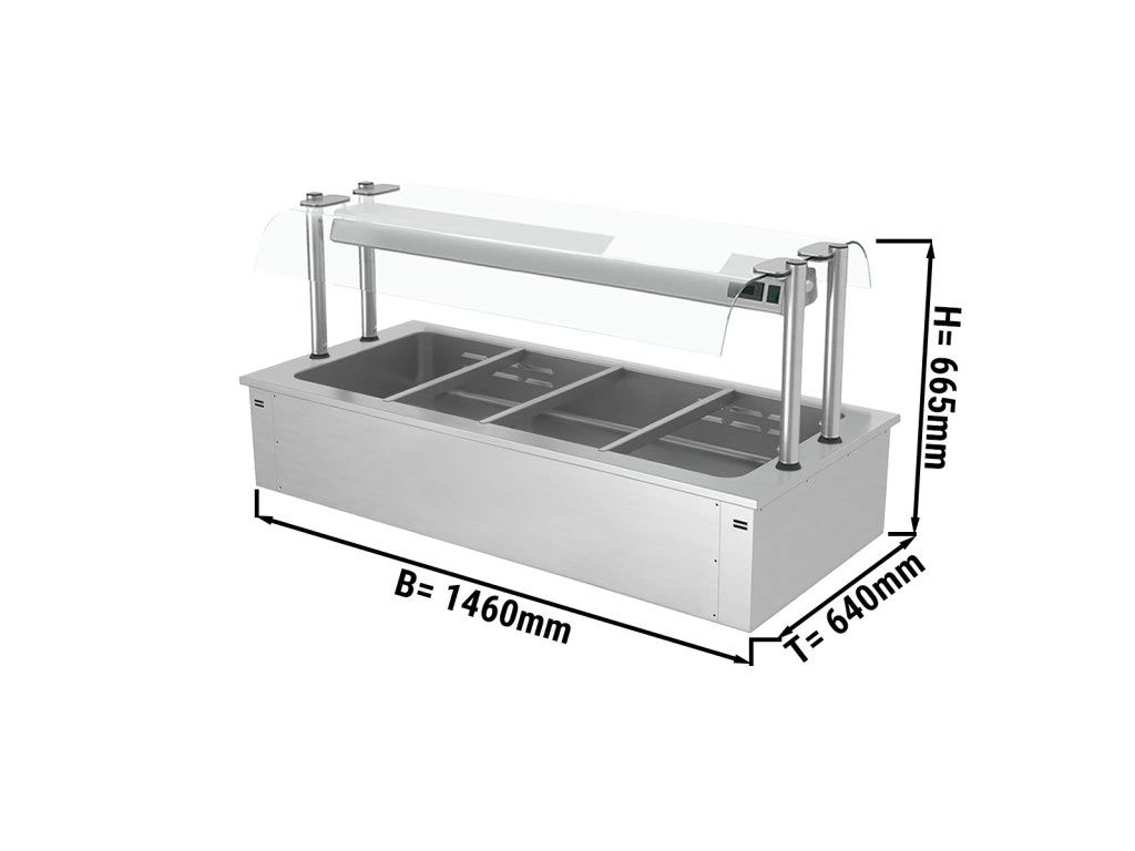 Bemar wbudowana - 1,5 m - 4x GN 1/1 - ze szklaną ochroną przed kaszlem