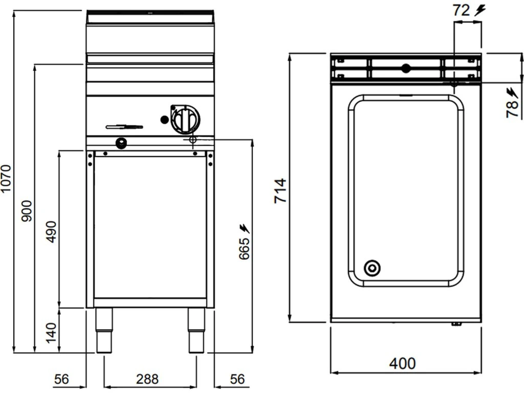 - Wymiary zewnętrzne szer. x gł. x wys: 400 mm x 714 mm x 1.070 mm