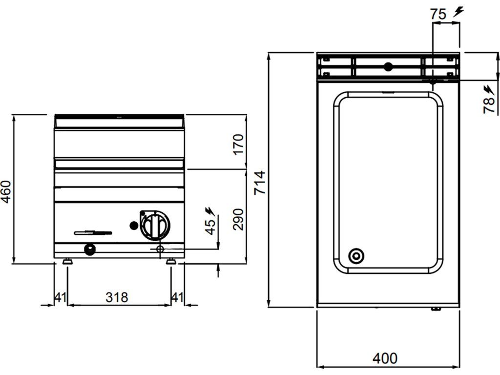- Wymiary zewnętrzne szer. x gł. x wys: 400 mm x 714 mm x 460 mm