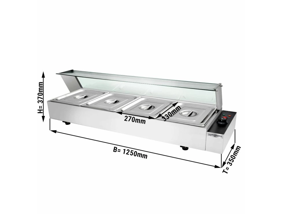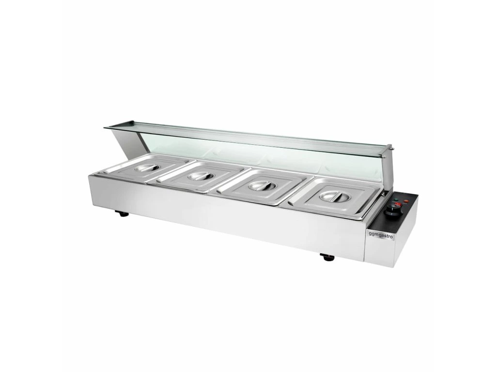 Bemar górny ze szklaną osłoną rożna - elektryczny - z 4 zlewami GN 1/2