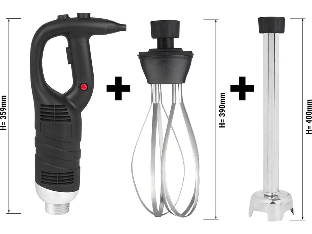 - Zestaw blenderów kielichowych zawierający 400 mm pałeczką do blendowania i trzepaczką 250 mm