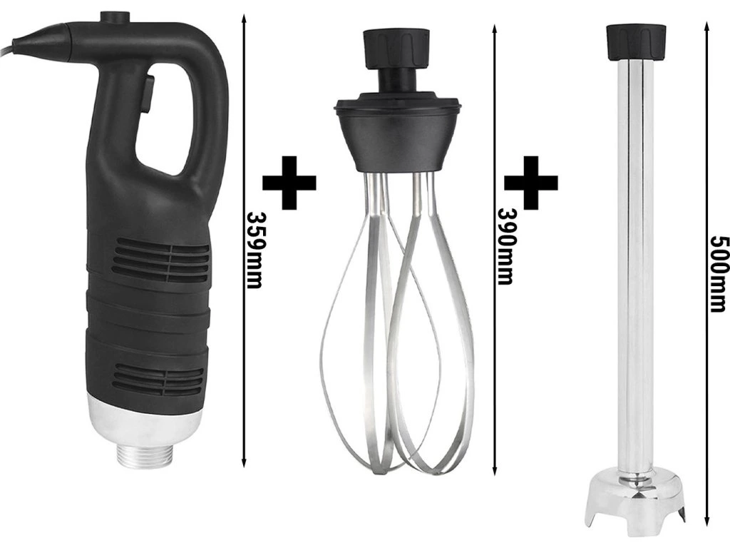 - Zestaw blenderów kielichowych zawierający 500 mm pałeczką do blendowania i trzepaczką 250 mm
