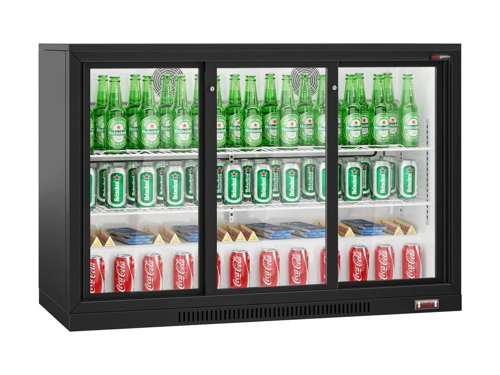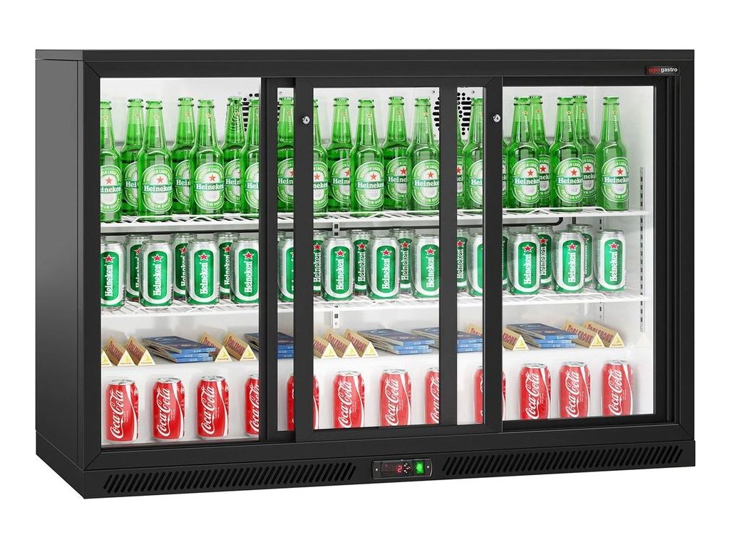 Chłodziarka barowa - 1330 mm - 320 litrów - z 3 przesuwanymi szklanymi drzwiami - czarna