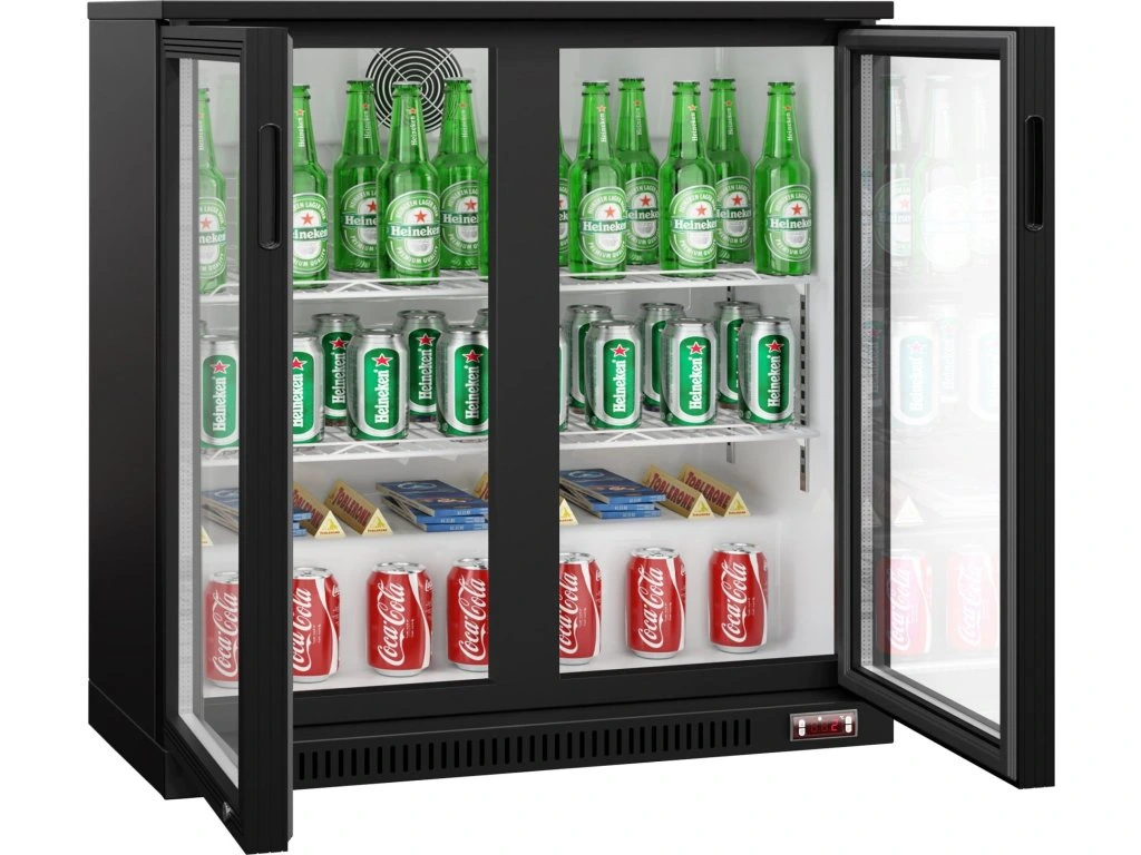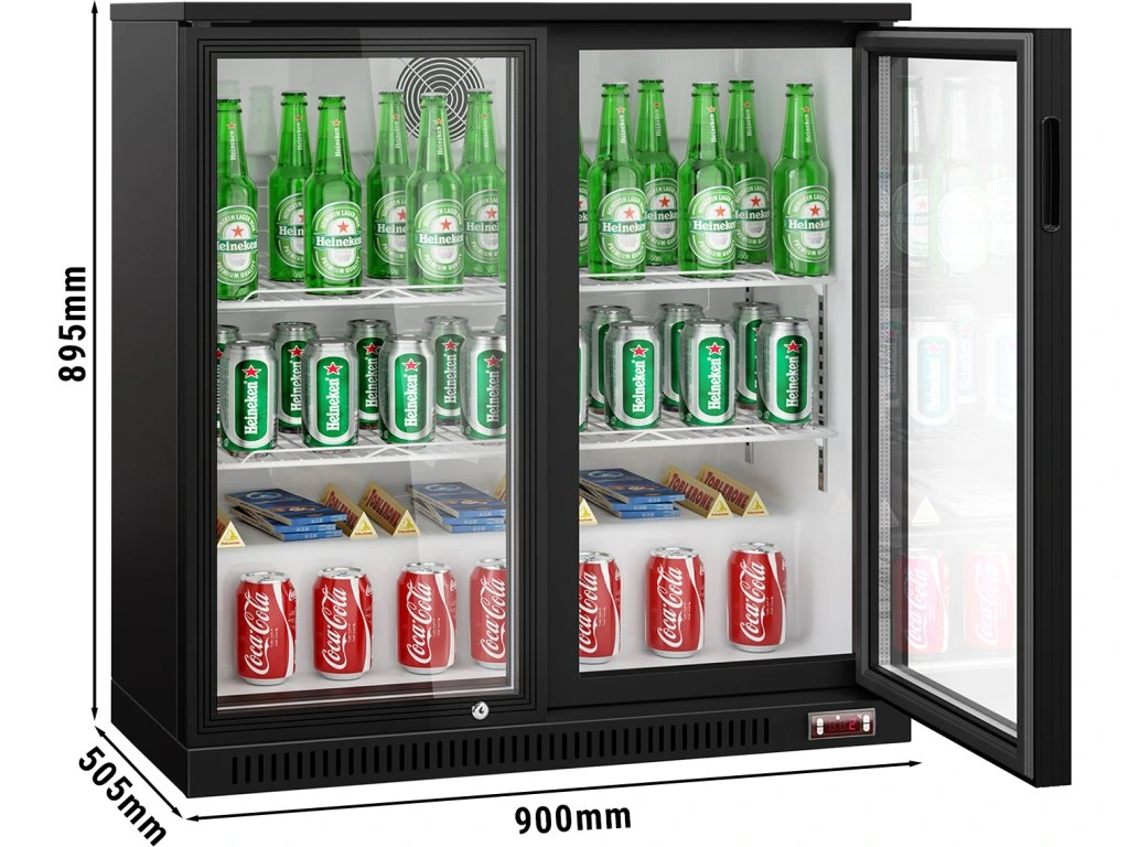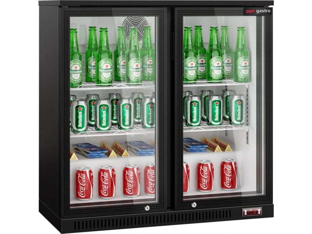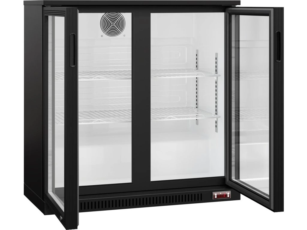 Barowy stół chłodniczy - 900 mm - 220 litrów - z 2 szklanymi drzwiami - czarna