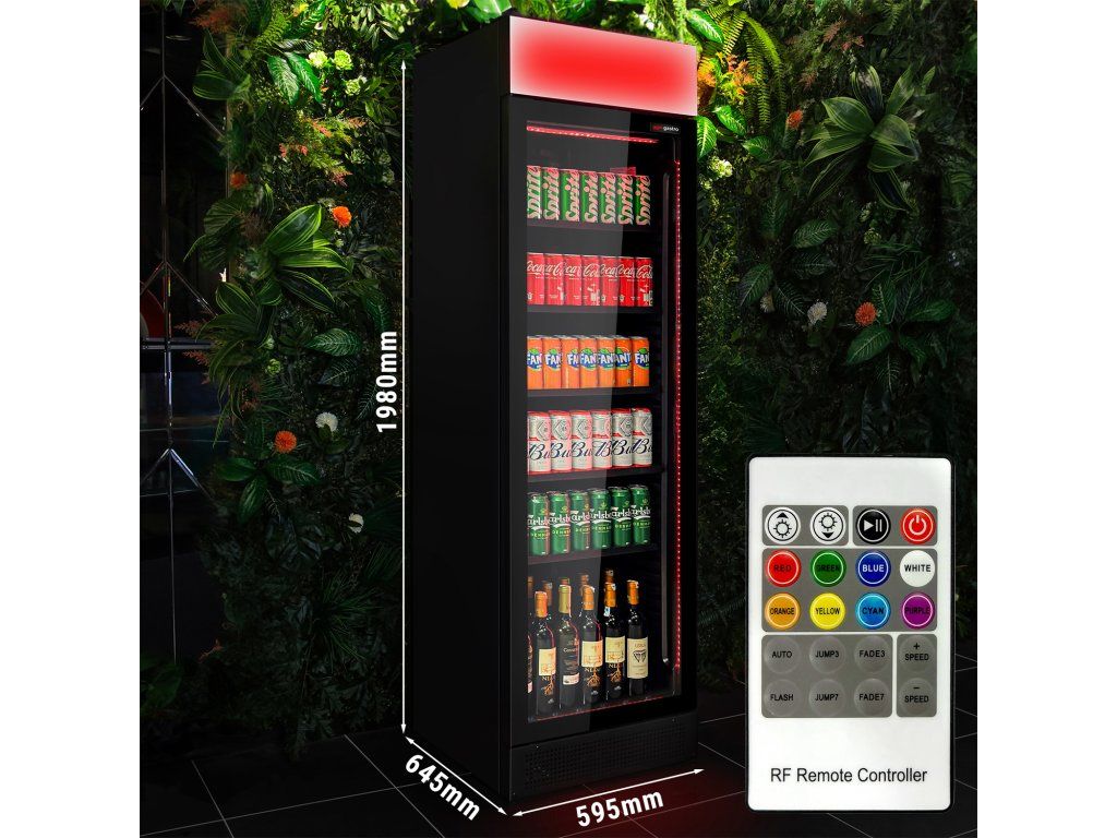 Chłodziarka do napojów - 345 litrów - bezramkowa konstrukcja - 1 szklane drzwi & kolorowe oświetlenie LED