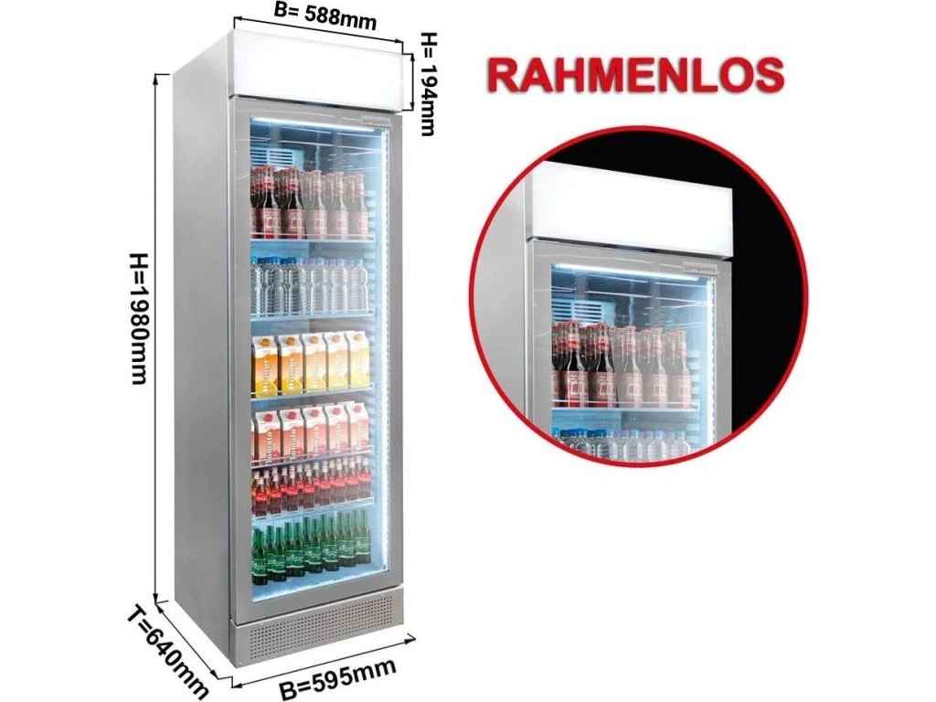 Chłodziarka do napojów - 345 litrów - bezramkowa konstrukcja - 1 szklane drzwi & wyświetlacz reklamowy
