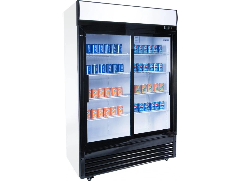 Chłodziarka do napojów - 880 litrów - z 2 przesuwanymi szklanymi drzwiami & wyświetlaczem reklamowym