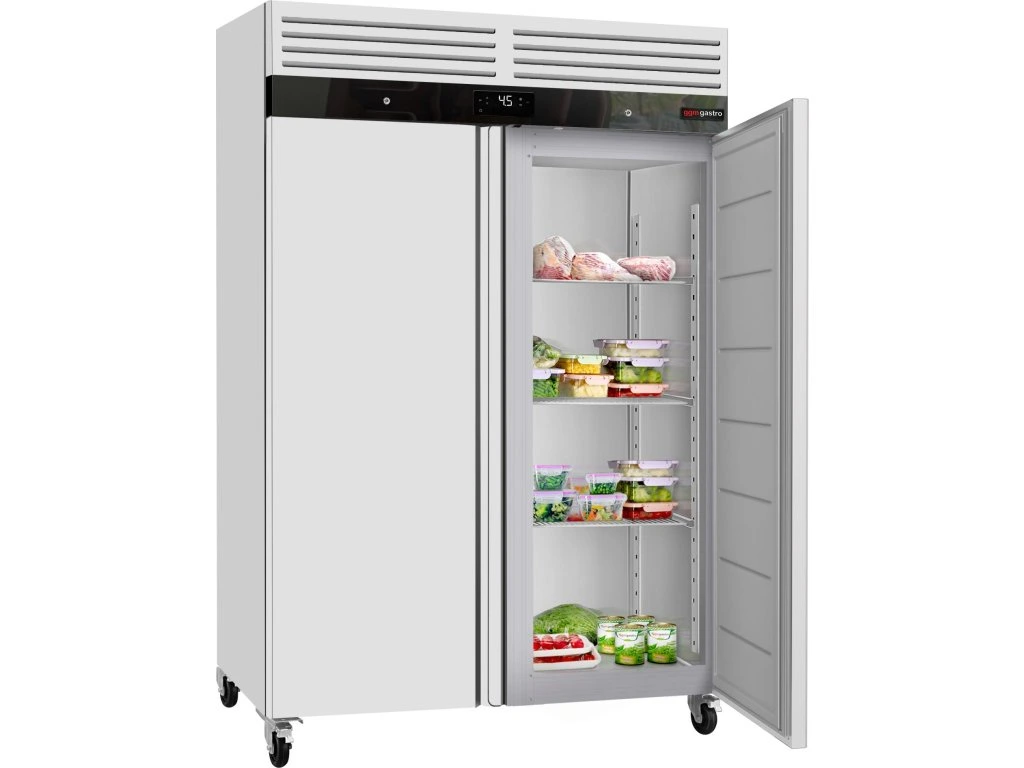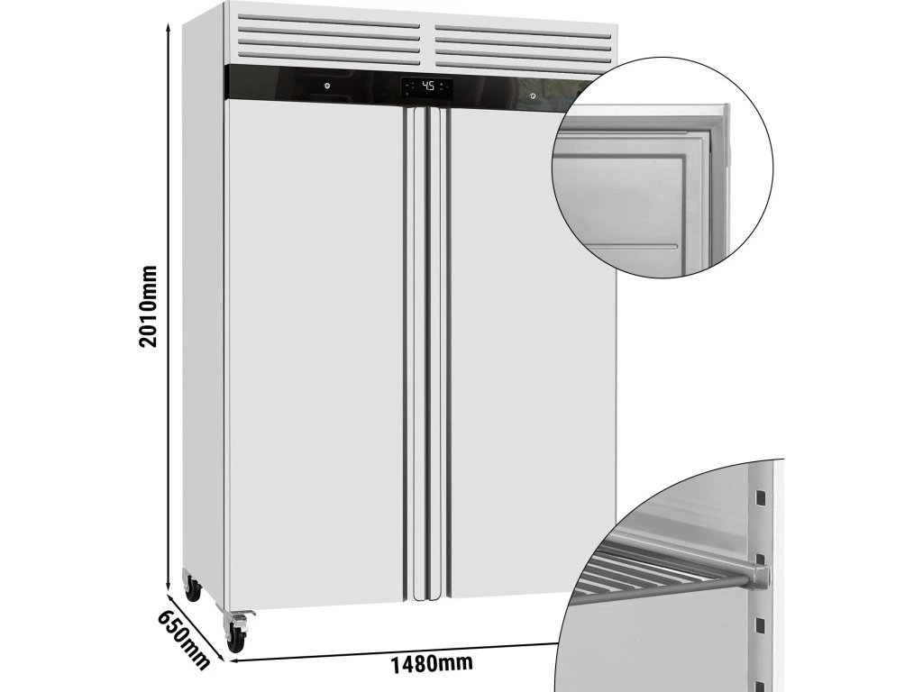 Chłodziarka ze stali nierdzewnej ECO - GN 2/1 - 1400 litrów - z 2 drzwiami ze stali nierdzewnej - wnętrze drzwi wykonane z tworzywa sztucznego