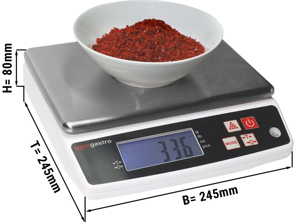 - Wskazanie wagi w: kg, lb und oz