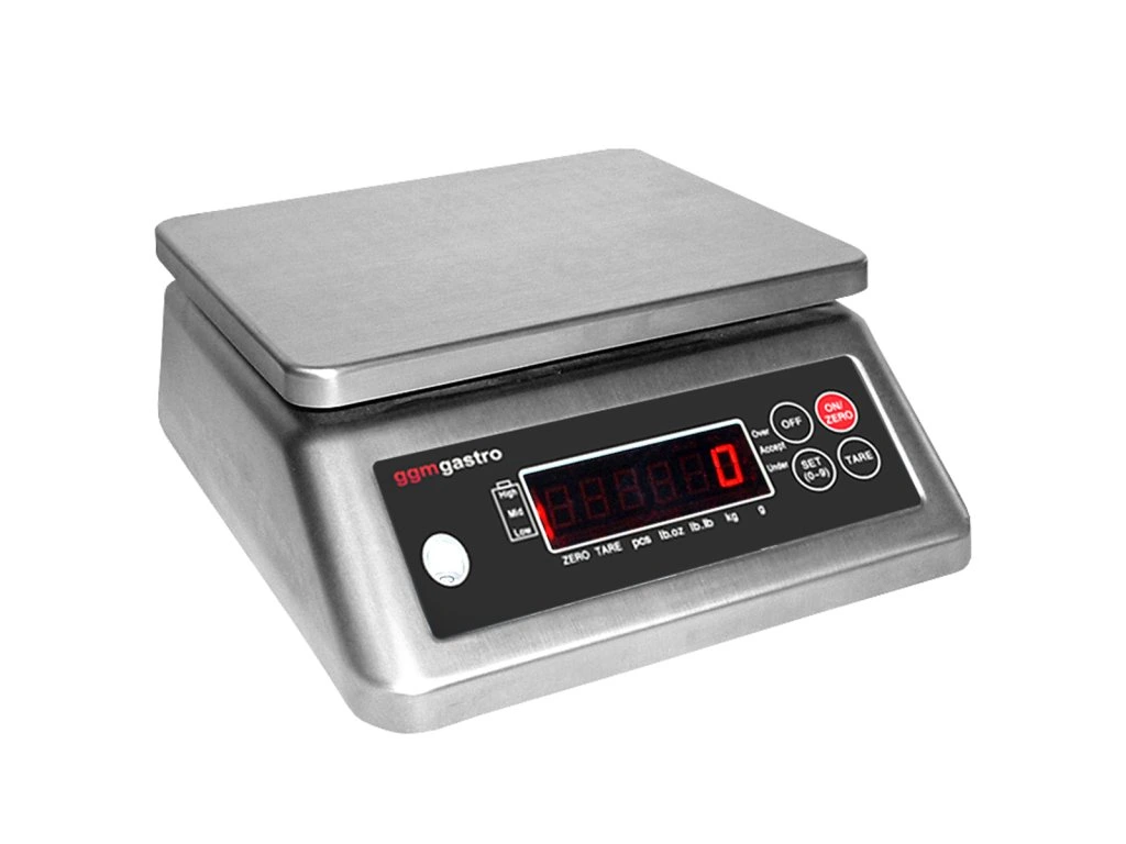 - Wskazanie wagi w: kg, g, lb, pcs und oz