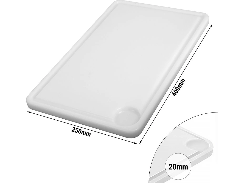 Deska do krojenia z rowkiem na sok - 250x400mm - Grubość 20mm - Biała