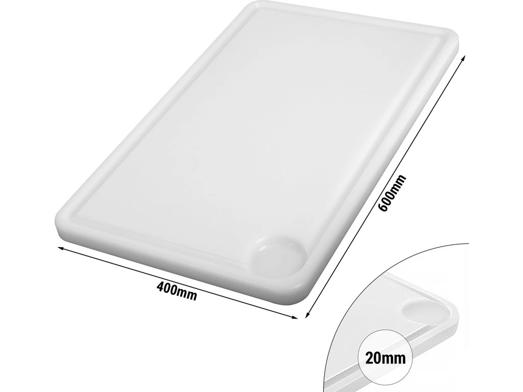 Deska do krojenia z rowkiem na sok - 400x600mm - Grubość 20mm - Biała