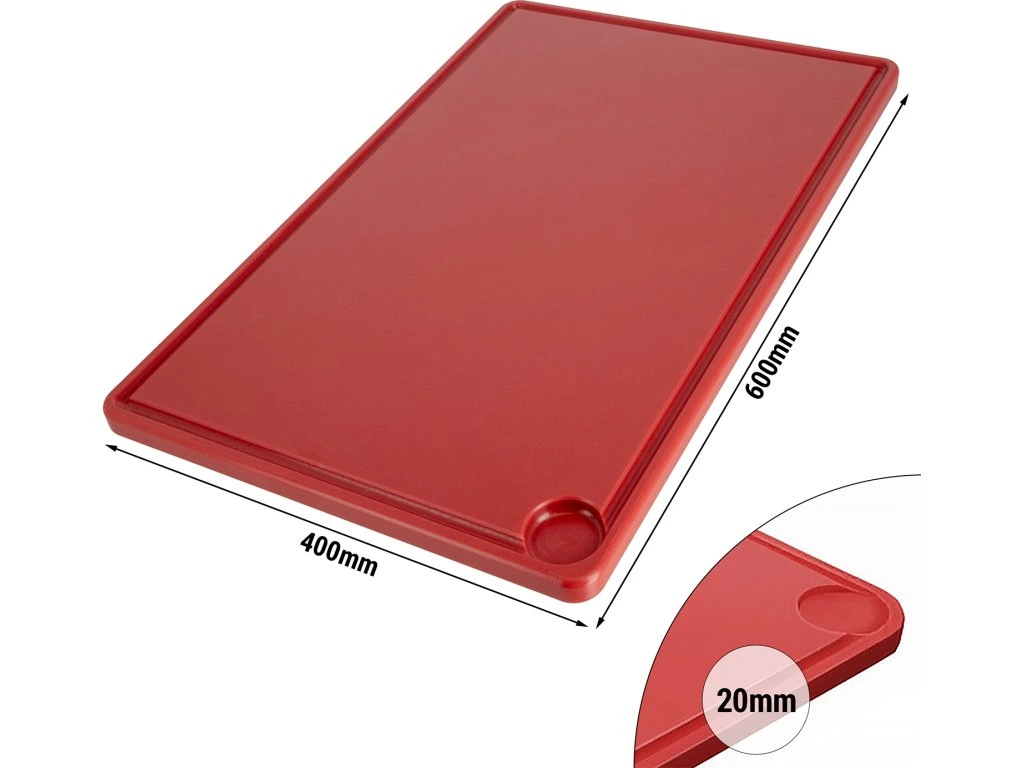 Deska do krojenia z rowkiem na sok - 400x600mm - Grubość 20mm - Czerwona