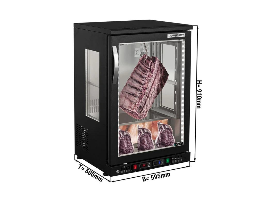 Dojrzewanie na sucho szafa do dojrzewania mięsa 0,59 m - z 1 szklanymi drzwiami - czarna