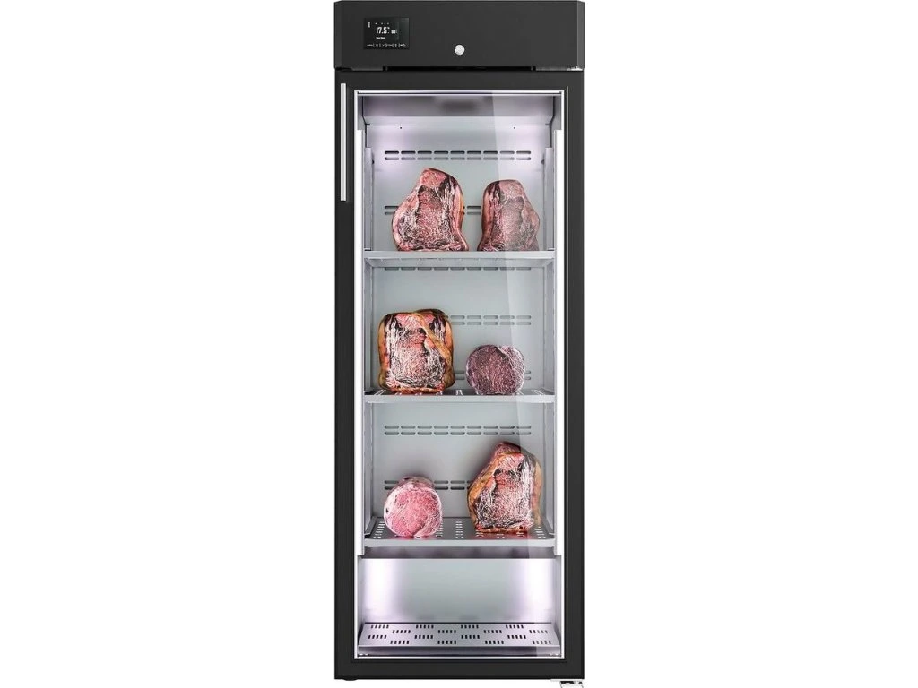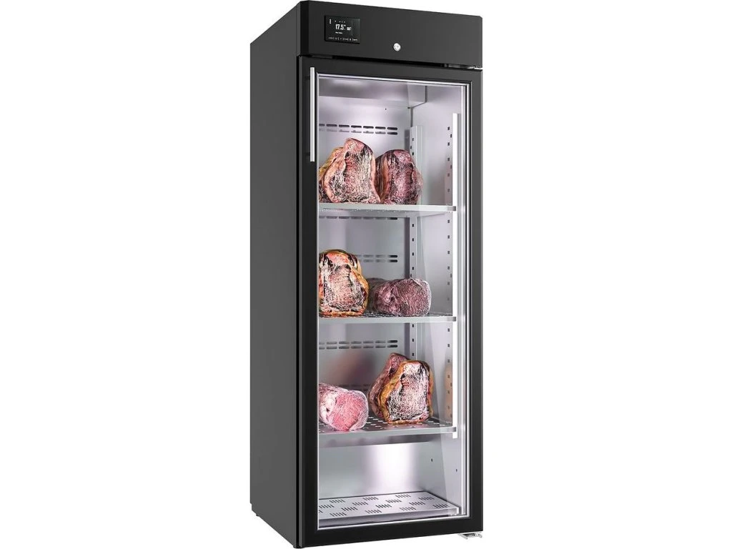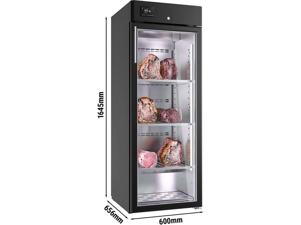 Dojrzewanie na sucho szafa do dojrzewania mięsa 0,60 m - 1 szklane drzwi - czarna