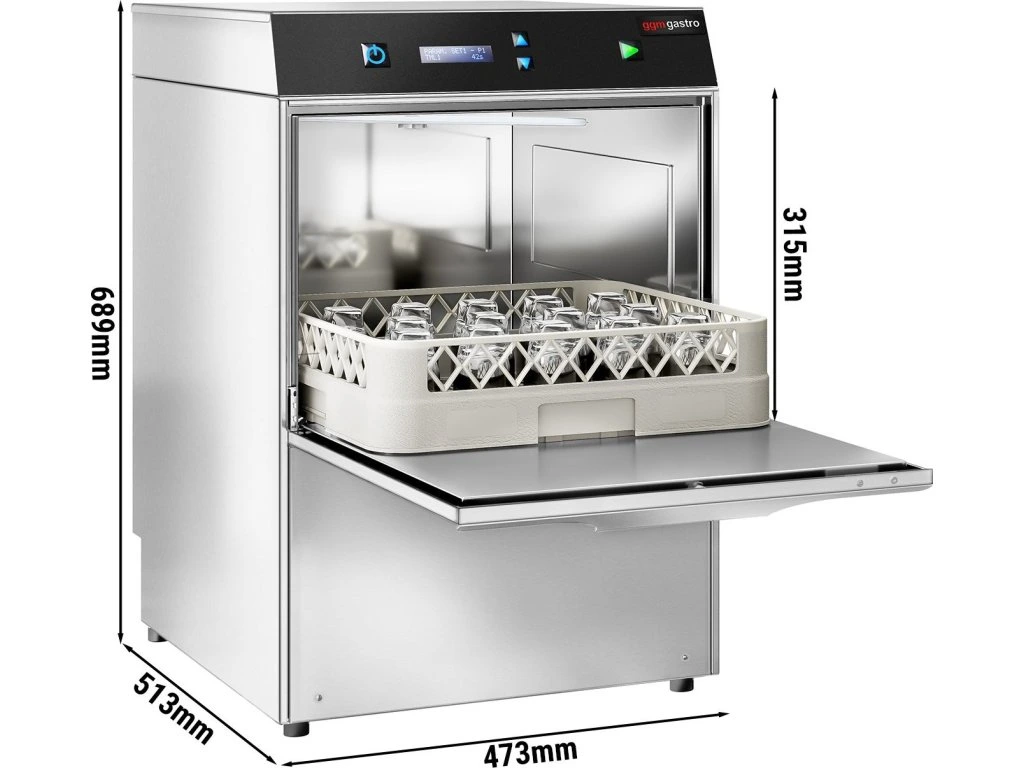 Dwuścienna zmywarka do szkła - cyfrowa - 2,97 kW - z detergentem, nabłyszczaczem & pompą spustową