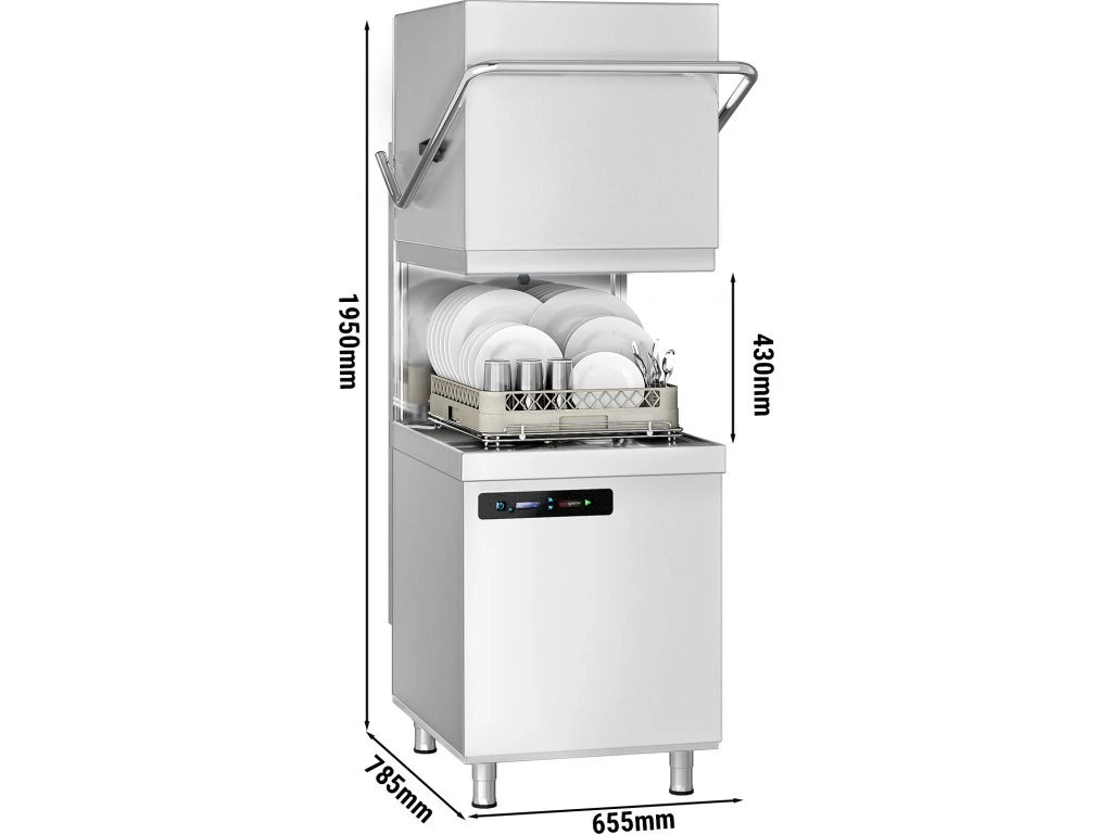 Dwuścienna zmywarka przelotowa - 7,1 kW - z detergentem, nabłyszczaczem & pompą spustową