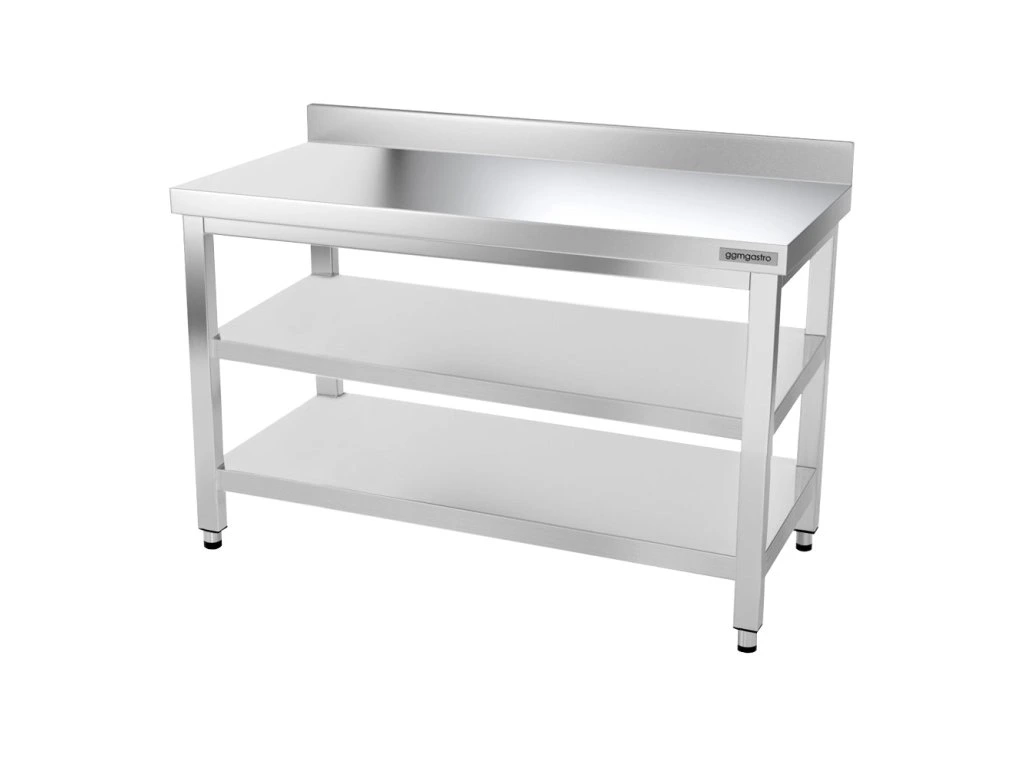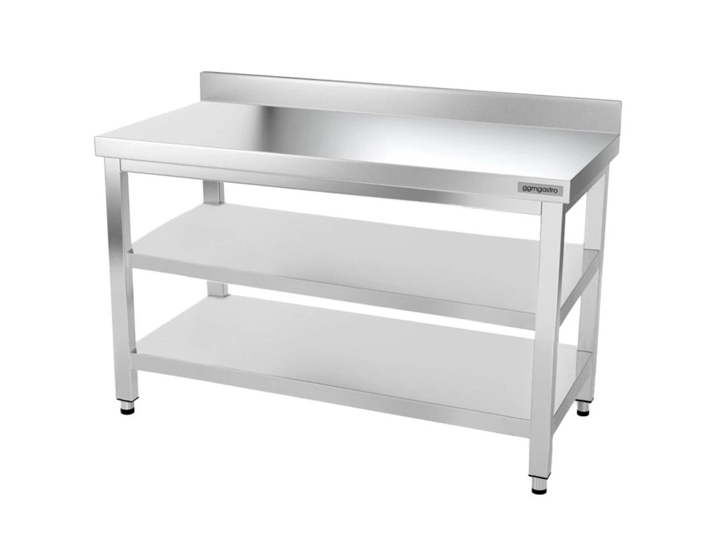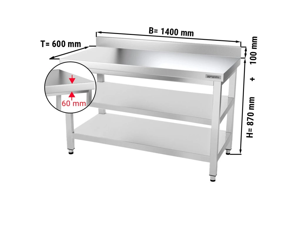 Stół roboczy PREMIUM - 1,4 m - z półką dolną, panelem tylnym i rantem