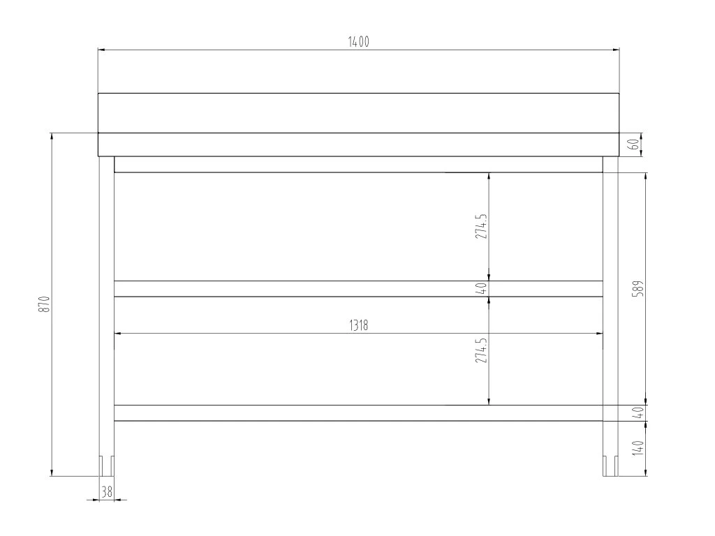 - Wymiary zewnętrzne szer. x gł. x wys: 1.400 mm x 600 mm x 970 mm
