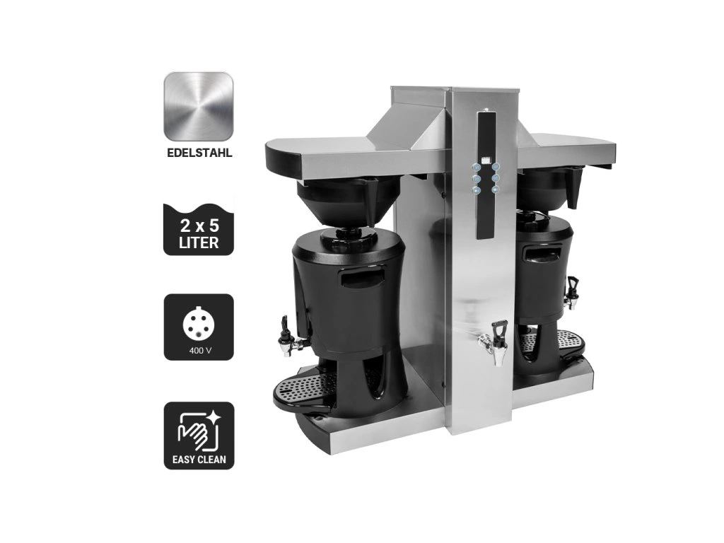 Ekspres do kawy z filtrem i dozownikiem gorącej wody - 2x 5 litrów - 9kW - z 2 ramionami zaparzającymi