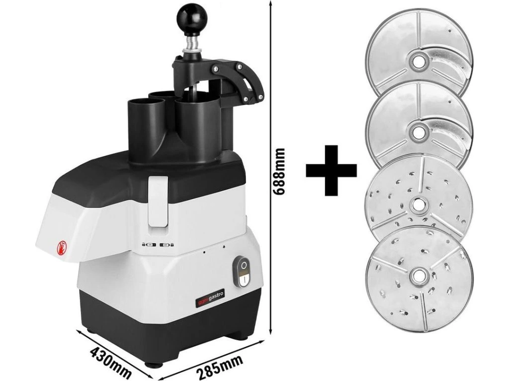 Elektryczna kompaktowa krajalnica do warzyw - 735 W - włącznie z 4 tarczami do krojenia/tarcia - pokrywa na zawiasach