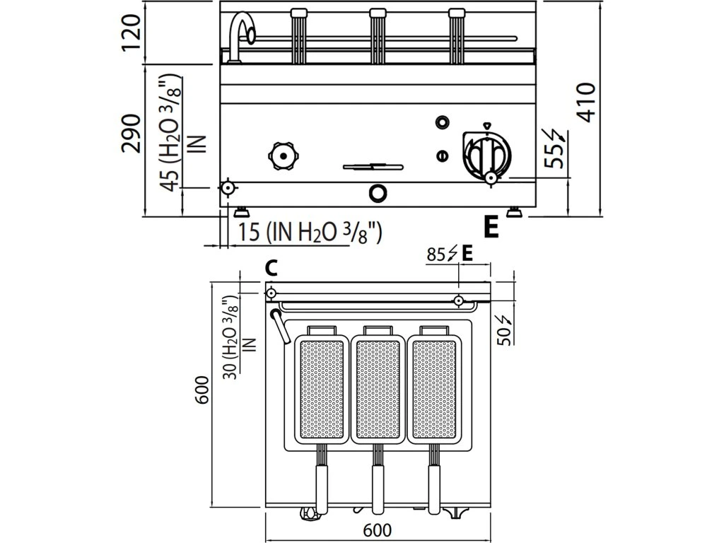 - Wymiary zewnętrzne szer. x gł. x wys: 600 mm x 600 mm x 410 mm