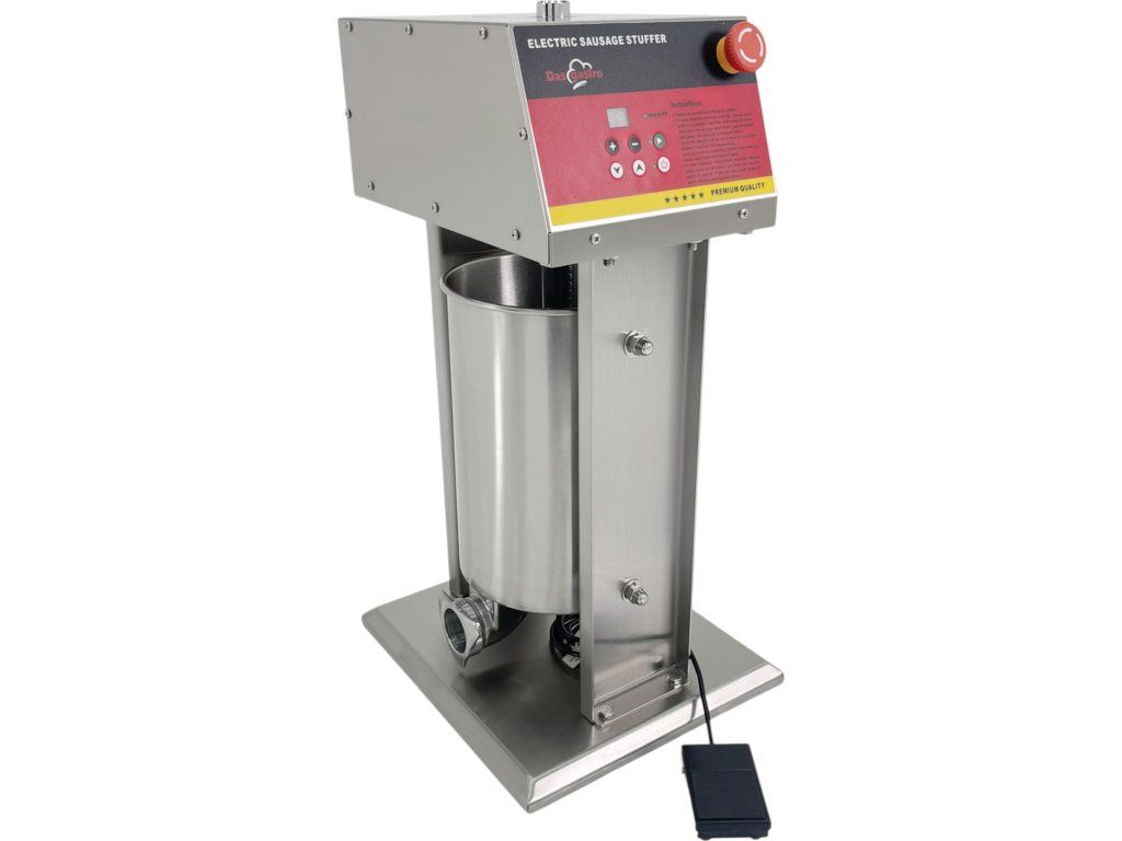 Elektryczna nadziewarka do kiełbas o pojemności 12 litrów, przeznaczona do szybkiej i równomiernej produkcji kiełbas. Konstrukcja ze stali nierdzewnej AISI 304, cicha praca silnika i wygodny sterownik nożny ułatwiają pracę przy napełnianiu wszelkiego rodzaju osłonek. Stabilna konstrukcja i wysoka trwałość sprawiają, że ten model jest niezawodnym urządzeniem dla sklepów mięsnych, domowych producentów i gastronomii.