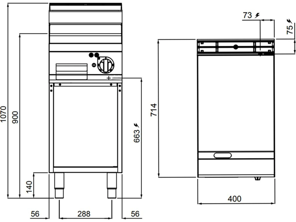 - Wymiary zewnętrzne szer. x gł. x wys: 400 mm x 714 mm x 1.070 mm
