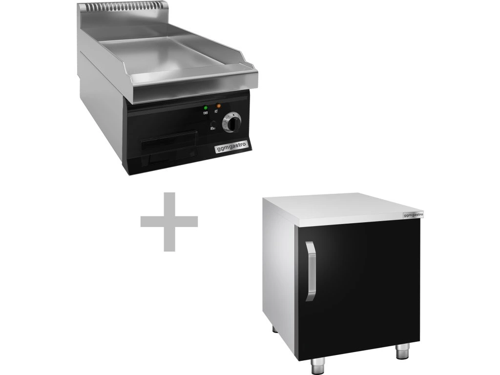 Elektryczna płyta grillowa - 4 kW - Gładka - włącznie z podstawą z drzwiczkami