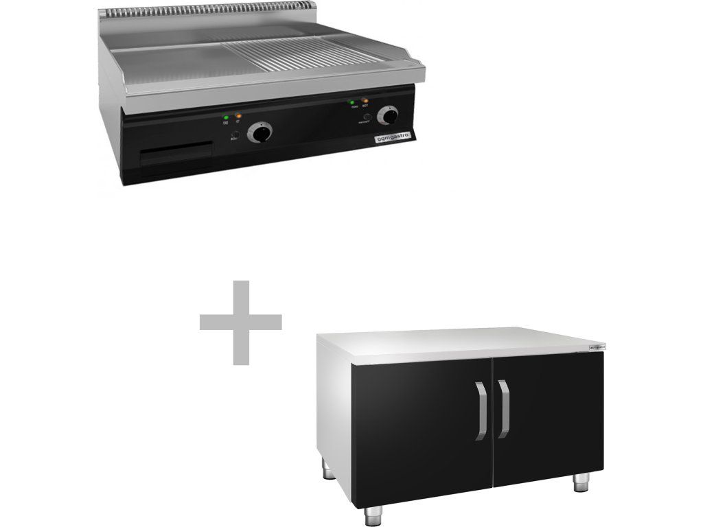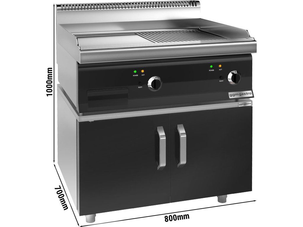 Elektryczna płyta grillowa - 7,1 kW - Gładka & Ryflowana - włącznie z podstawą z 2 drzwiczkami