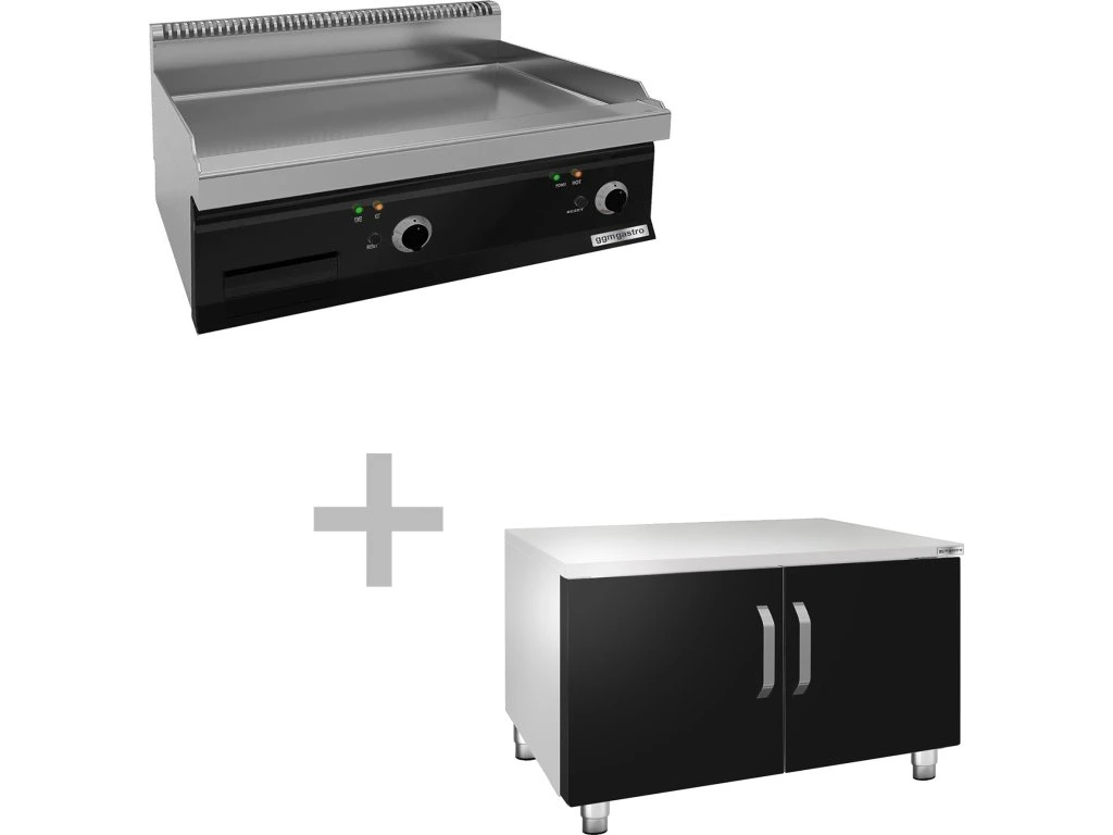 Elektryczna płyta grillowa - 7,1 kW - Gładka - włącznie z podstawą z 2 drzwiczkami