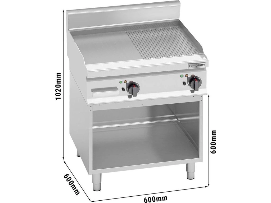 Elektryczna płyta grillowa - 8 kW - Gładka & ryflowana - włącznie z podstawą
