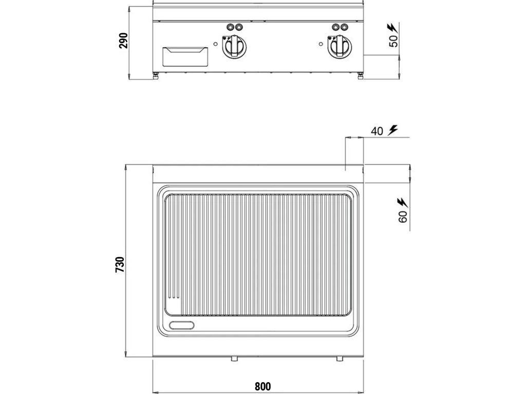 Elektryczna Płyta Grillowa - 9,6 kW - Ryflowana