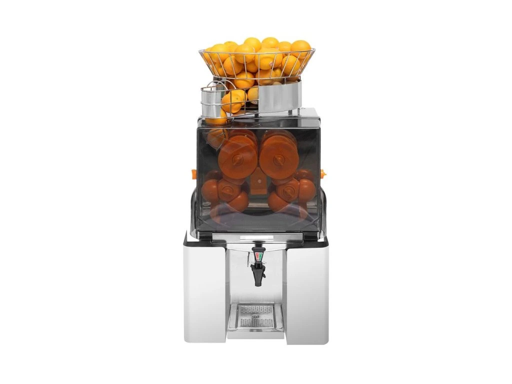 Elektryczna wyciskarka do pomarańczy - z automatycznym podawaniem owoców i kranikiem spustowym - srebrna
