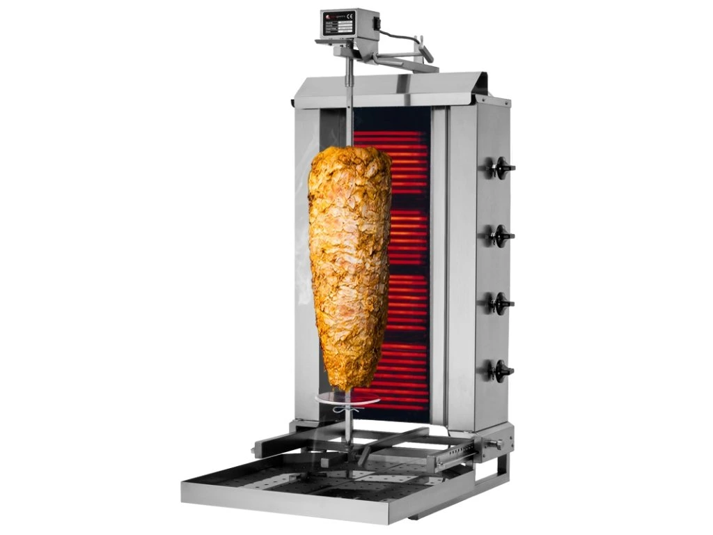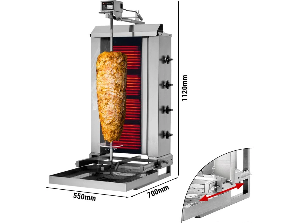 Elektryczny grill do gyrosa/kebaba - mobilny - 4 palniki - maks. 60 kg - włącznie z drzwiami na zawiasach