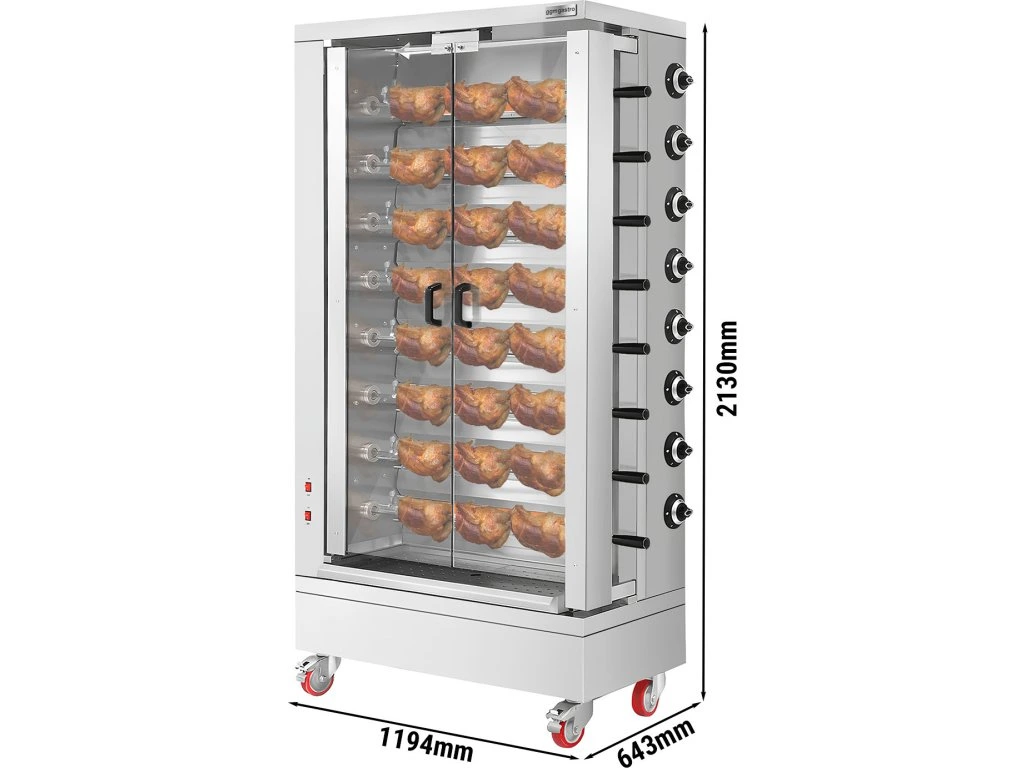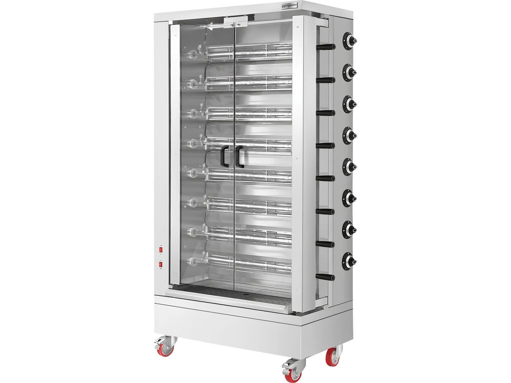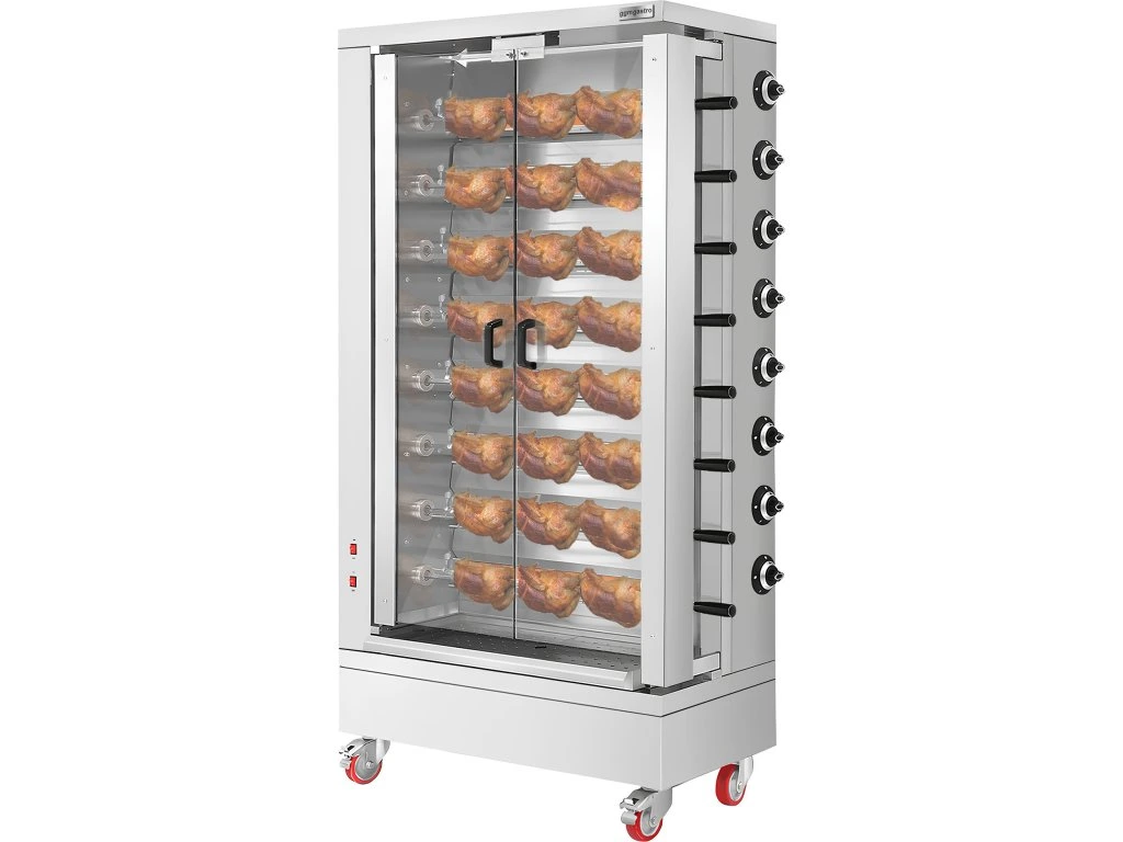 Elektryczny grill do kurczaka - 26,4 kW - z 8 szpikulcami do 48 kurczaków