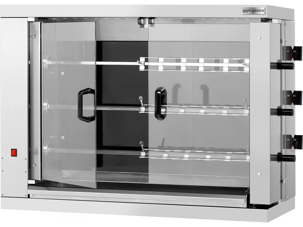 Elektryczny grill do kurczaka - ceramika szklana - 14,4 kW - z 3 szpikulcami dla maksymalnie 18 kurczaków