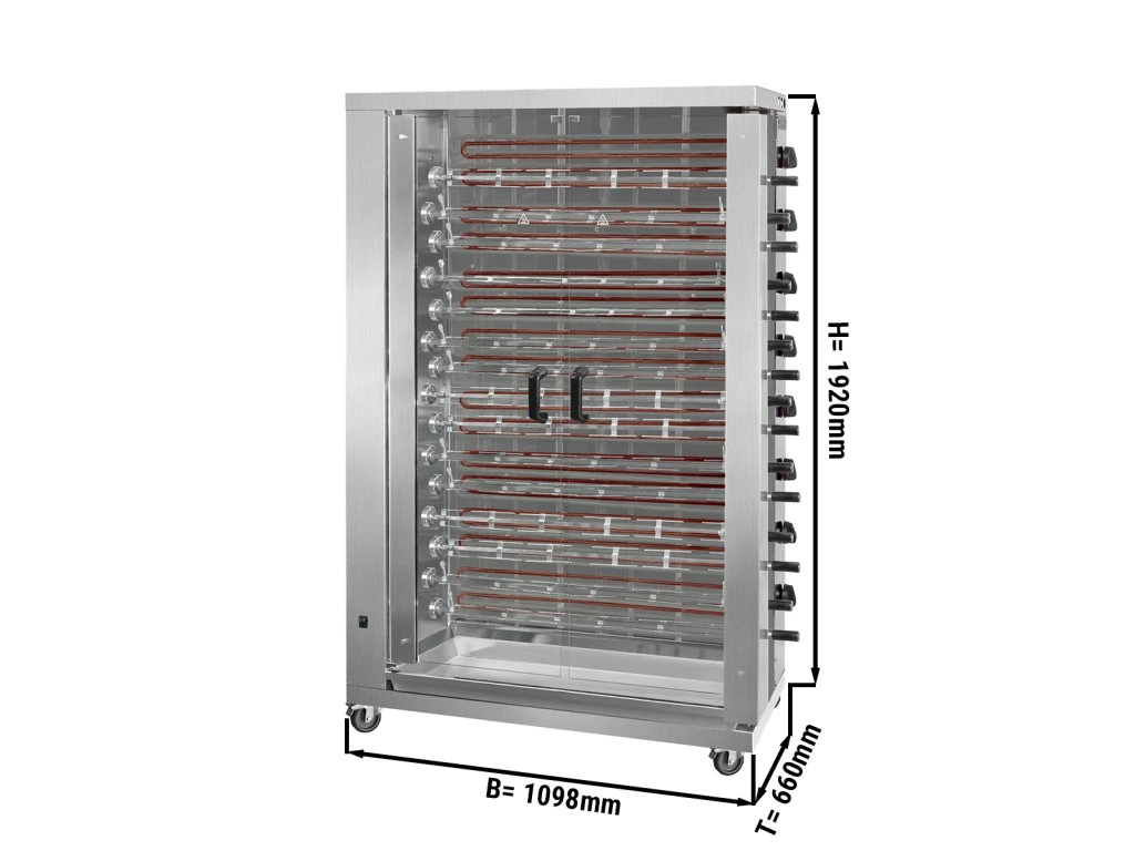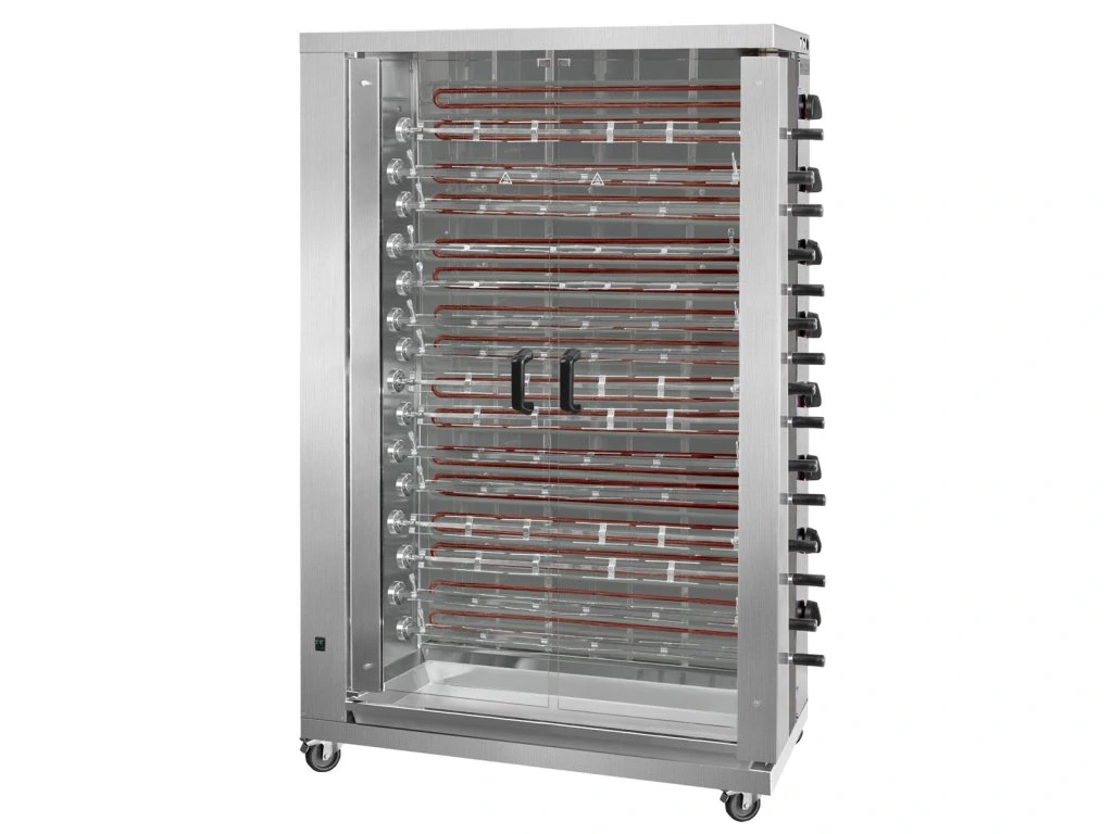 Elektryczny grill do kurczaka ECO - 38,4 kW - z 15 szpikulcami na 90 kurczaków
