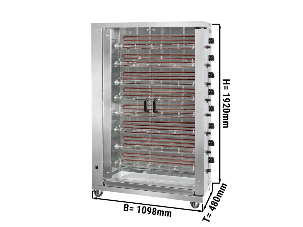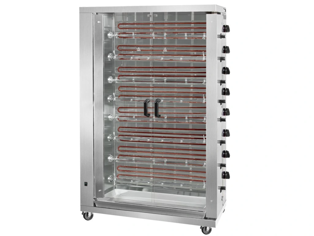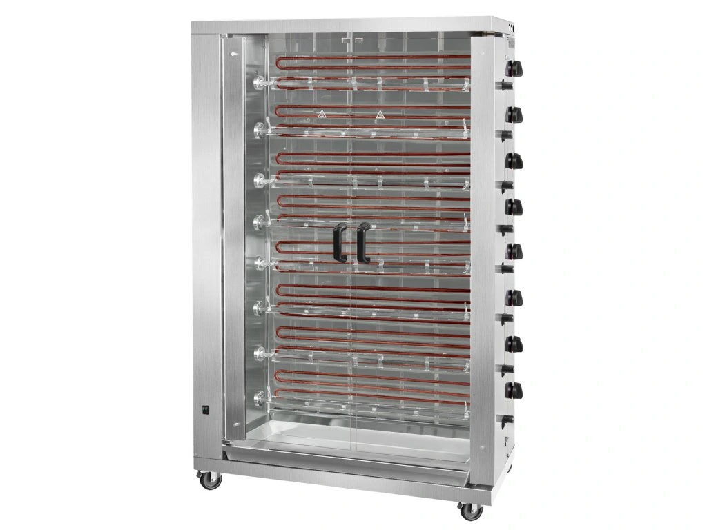 Elektryczny grill do kurczaka ECO - 38,4 kW - z 8 szpikulcami na 48 kurczaków
