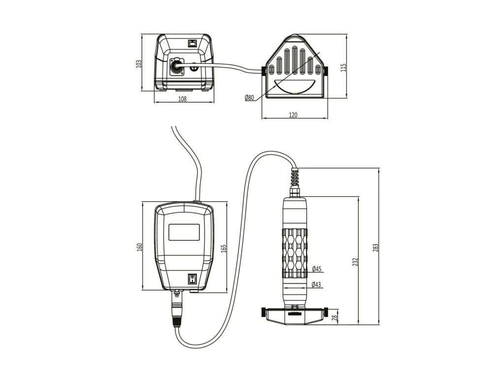 - Wymiary zewnętrzne (Szer.xGłęb.xWys.): 120 mm x 115 mm x 232 mm
