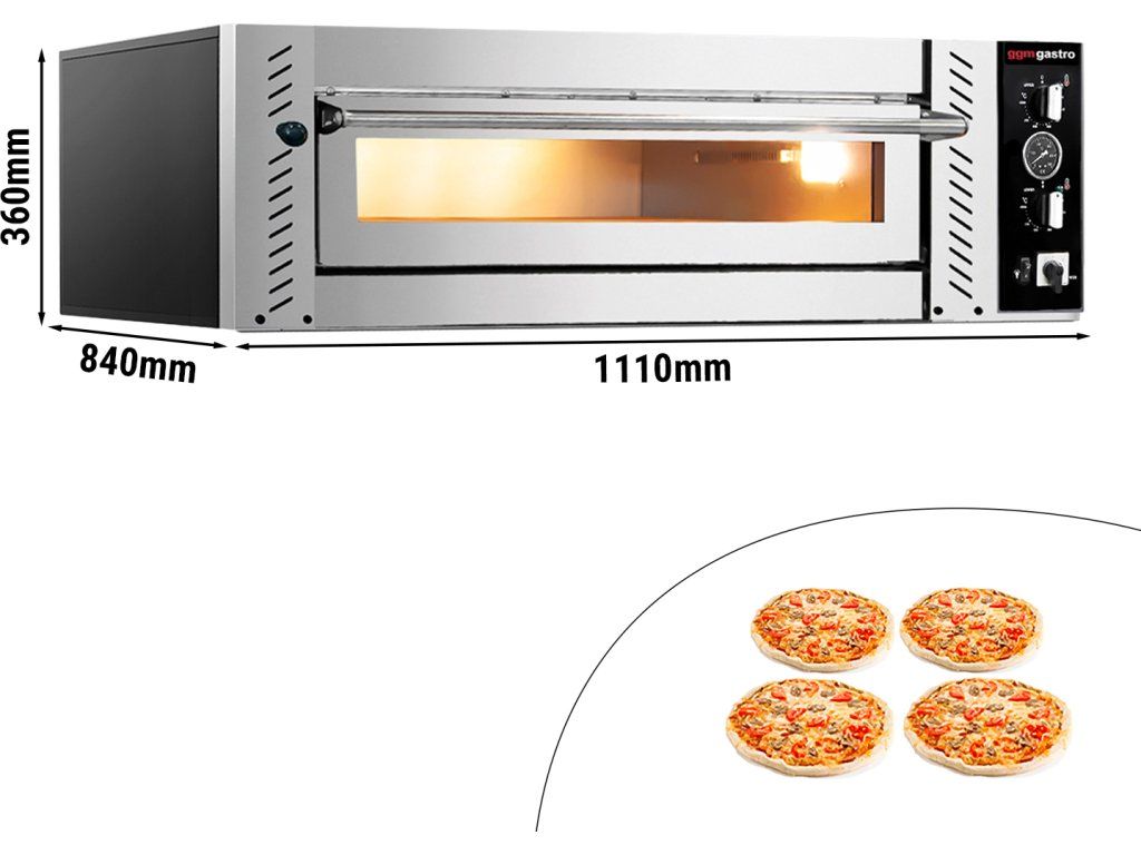 - 1 komora pieczenia dla 4 Pizzen z Ø 34 cm