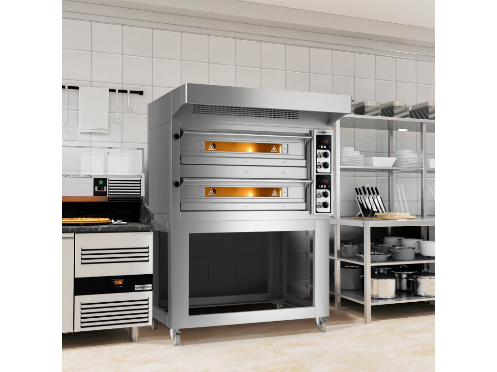 - Izolowany termicznie piekarnik elektryczny z okapem i podstawą ze stali nierdzewnej