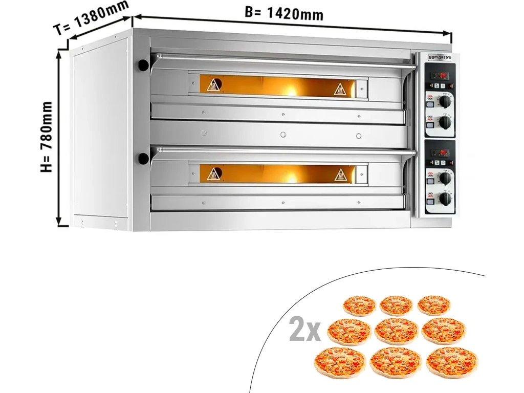 - 2 komory pieczenia dla 9+9 Pizzy z Ø 33 cm