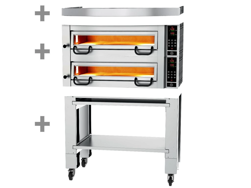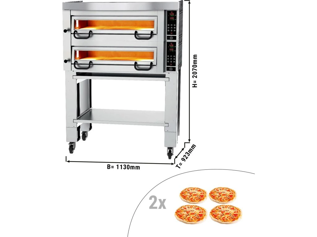 Elektryczny piec do pizzy Power - 4+4 34cm - Cyfrowy - włącznie z okapem , podstawą i zestawem kółek